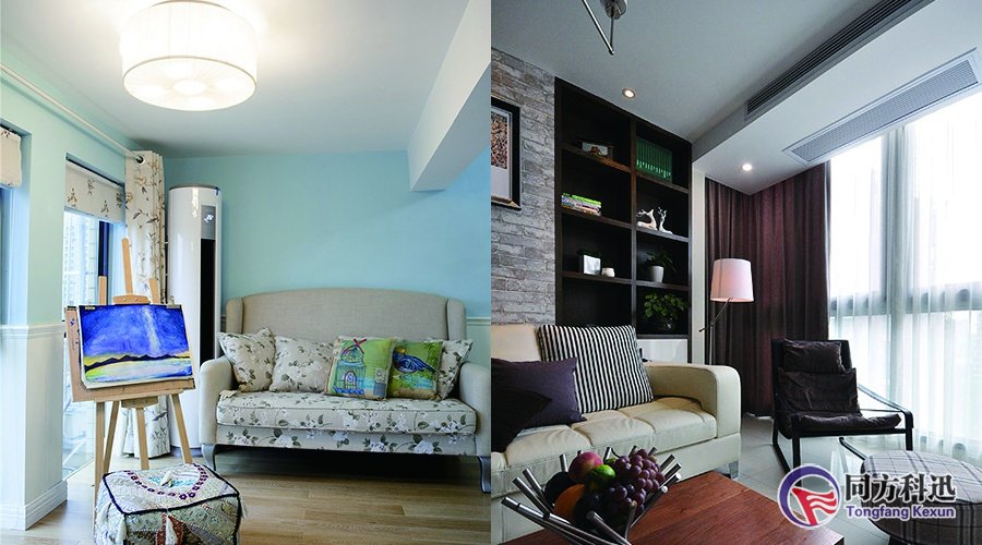傳統(tǒng)的柜式空調(diào),考慮到管道長度和美觀性的問題,都會把內(nèi)機放置在在靠近室外的墻壁或者玻璃的位置,這樣做帶來的問題就是如果剛好擺放位置正對沙發(fā)或者床的話,就會很影響人體的舒適度,尤其是家里有老人或小孩的家庭。