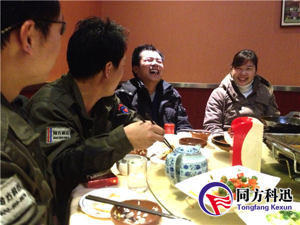 吃年夜飯是中國人的傳統(tǒng),公司全體員工聚集在飯店包房內(nèi),席間歡聲笑語不斷,大家借此寶貴良機(jī),就平時(shí)工作中遇到的難事、趣事互相交流,一起分享。大家舉杯同飲,感謝同方科迅給我們的提供像家人一樣的團(tuán)員的機(jī)會。彼此祝愿節(jié)日快樂,闔家幸福,也祝愿我們同方科迅的事業(yè)蒸蒸日上、興旺美好。